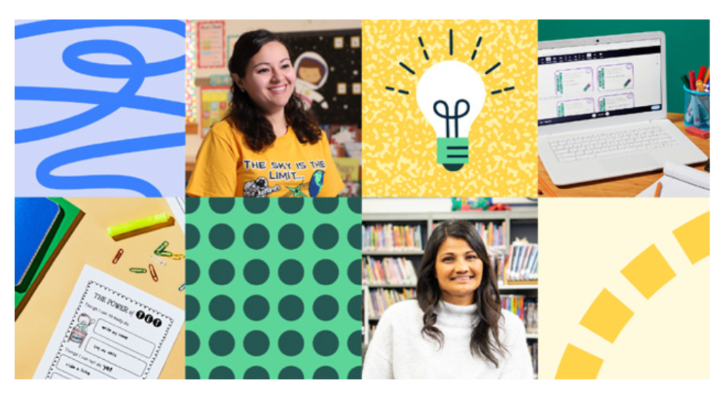 It symbolizes the transference of wisdom and expertise between our teacher community. It aims to project us into the future with its modernity, momentum, and dynamism. And finally, it is built with the intention to flex and adapt to our various product offerings, channels, and mediums.