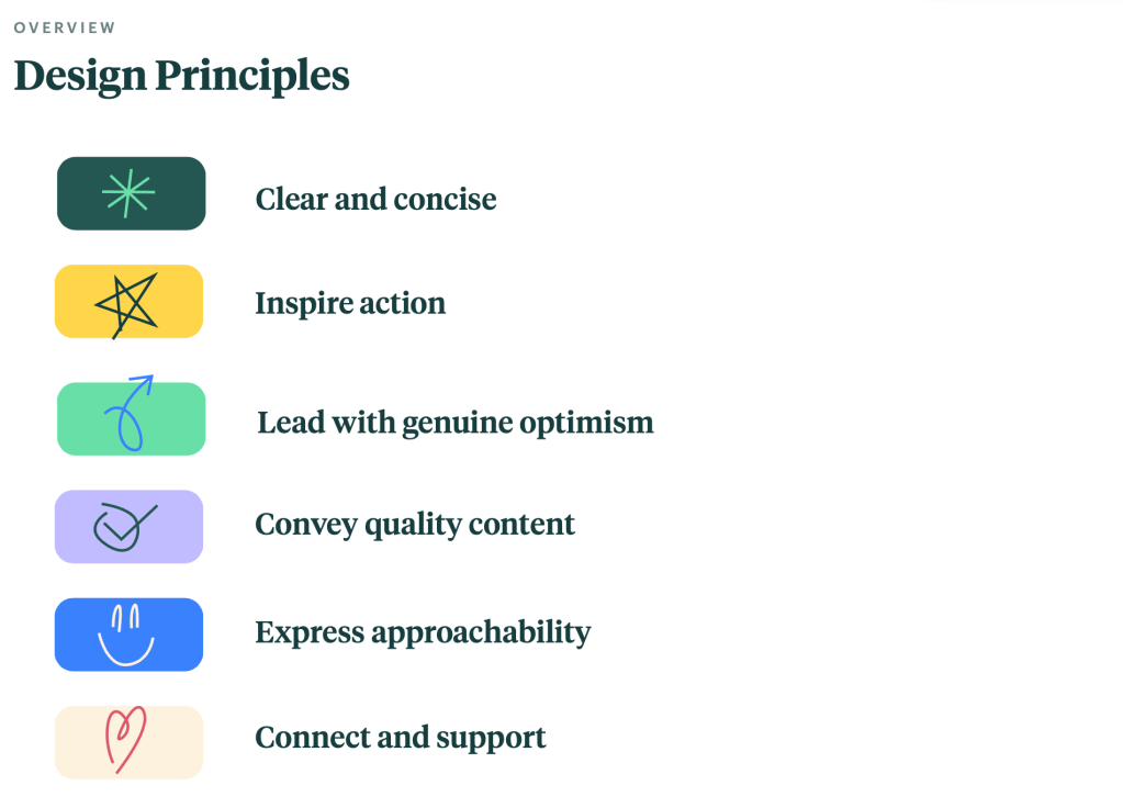 Establishing clear design principles is a powerful way to make the design process more visible within an organization. Too often, design can feel like an abstract or subjective discipline to those outside of it. By formalizing principles, design leaders provide a framework that increases design advocacy, aligns teams, and elevates design’s impact on business strategy. When leadership, engineering, and marketing teams can point to design principles as a foundation for decisions, it strengthens the role of design as a strategic driver rather than just a service function.