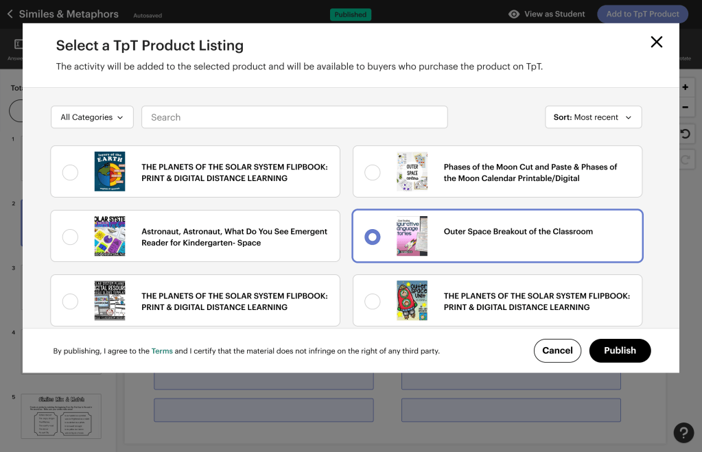 Easel was fundamentally different. It was a tool—a way for teachers to create interactive digital activities. But it existed within TPT’s marketplace, which created unique design challenges.