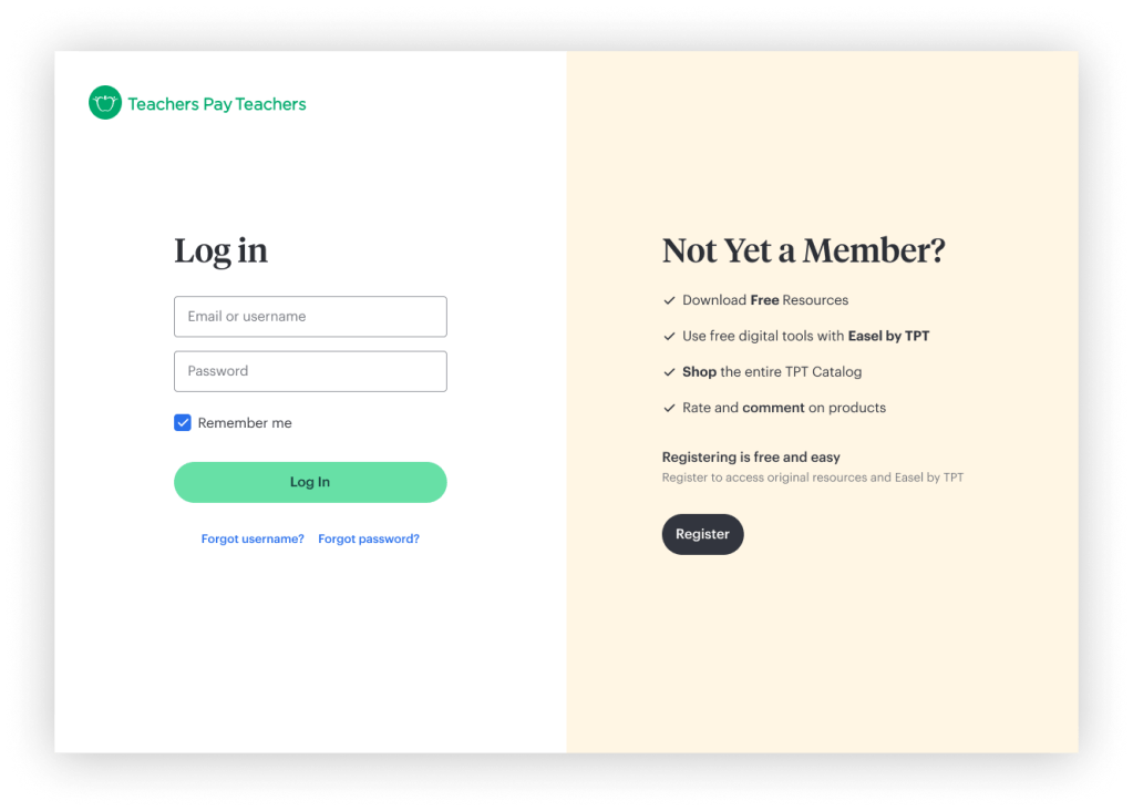 - Modernize login and registration to align with the updated TPT brand and improve trust.