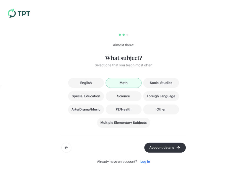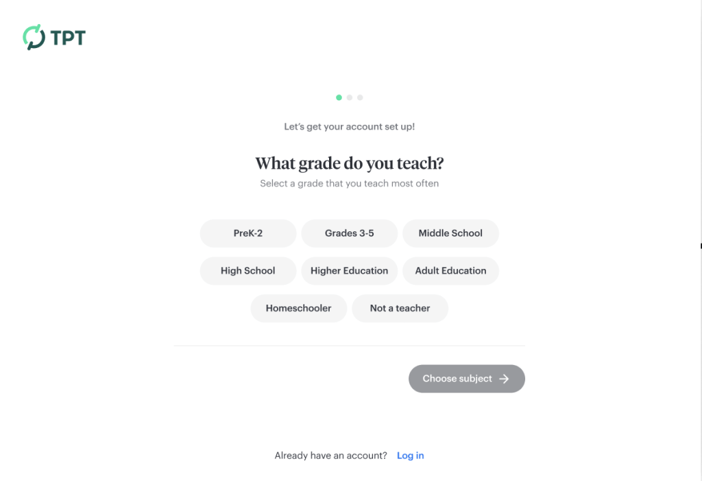 If you teach 3rd-grade math, seeing middle-school history resources on the first entry isn’t just irrelevant; it’s distracting and creates the sense that TPT doesn’t have what you need. By capturing grade and subject taught during signup, we could customize default search results, surface relevant content immediately, and reduce time-to-value for new users.
